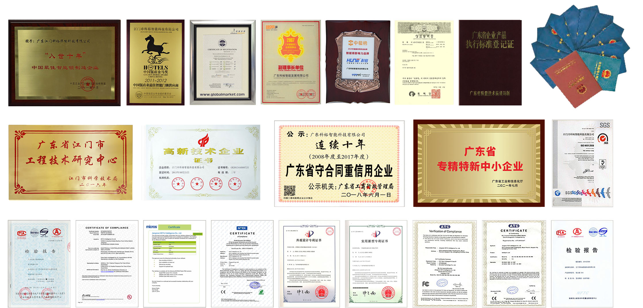 廣東科裕智能科技有限公司是有超過20年智能鎖行業經驗國內較早的大型智能門鎖生產商,是較早一批廣東“專精特新”企業,廣東省高新技術企業,廣東省科技廳授予廣東省多功能智能鎖具工程技術研究中心,生產總部設在廣東省珠江三角洲的中國“第一僑鄉”江門市。公司集產品研發、生產、銷售、維護于一體。企業憑借多年來智能門鎖的發展,累獲多個行業獎項,被廣東省市場監督局連續過10年授予“守合同重信用企業”??圃F放剖菑V東省重點商標保護名錄。